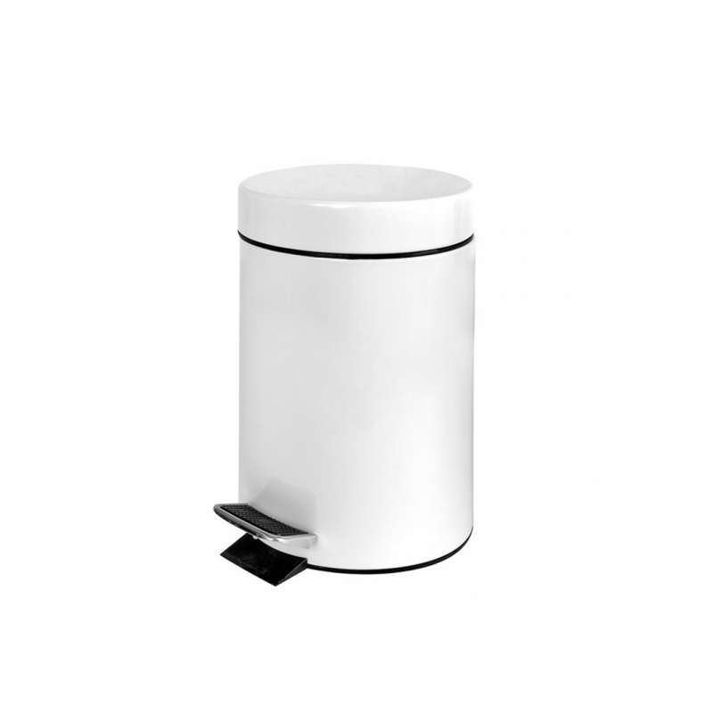Papelera inox con pedal y receptáculo interior en color blanco.